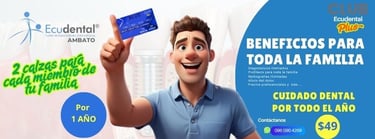 PLAN DENTAL POR UN AÑO , INCLUYE PARA 4 MIEMBROS DE LA FAMILIA, PUEDES ADICIONAR A OTRO MIEMBRO POR UN COSTO MINIMO